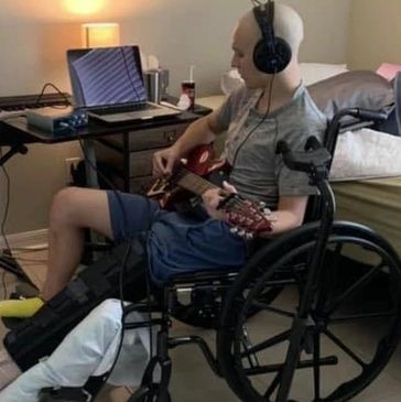 Sean was diagnosed at 17 in January of 2020 during COVID with Osteosarcoma, a type of bone cancer. He was an avid dancer and the lead in several musical theatre productions at the time. Sean's limb salvage surgery took thirteen hours to remove the tumor and replace 13 cm of his Tibia and knee with a prosthesis.