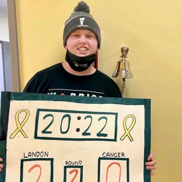 Cheering for Landon! Spring training for football in April of his freshmen year (2019), Landon was experiencing pain in his right shoulder during workouts and his family started the search for answers. September 2019 a tumor in Landon’s right shoulder was diagnosed as Ewings Sarcoma. “Immediately, in one moment, my life changed. Scans sho